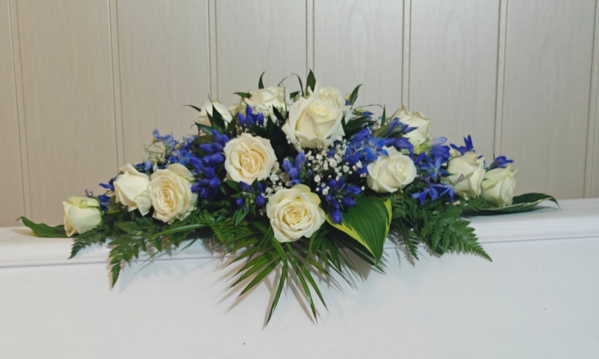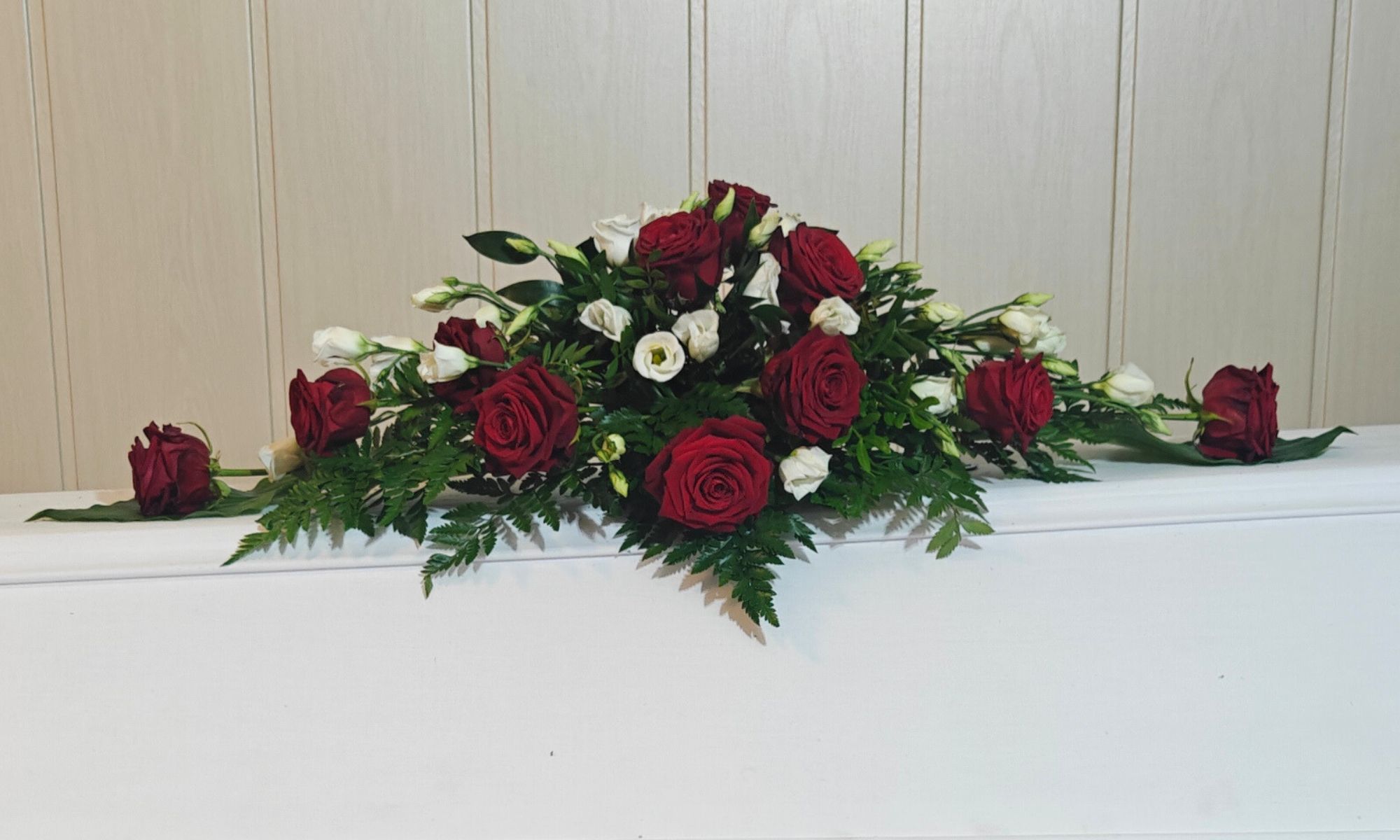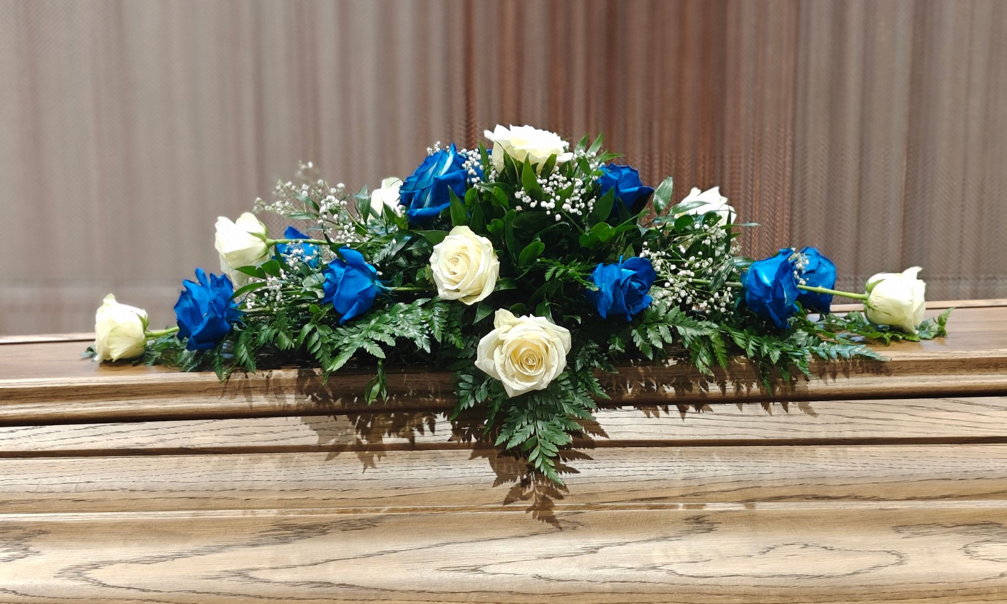 Perheyrityksemme Hautaustoimisto Tammen arkkulaitteet ja surukukat valmistaa floristi Anne, yrittäjäveljesten äiti.