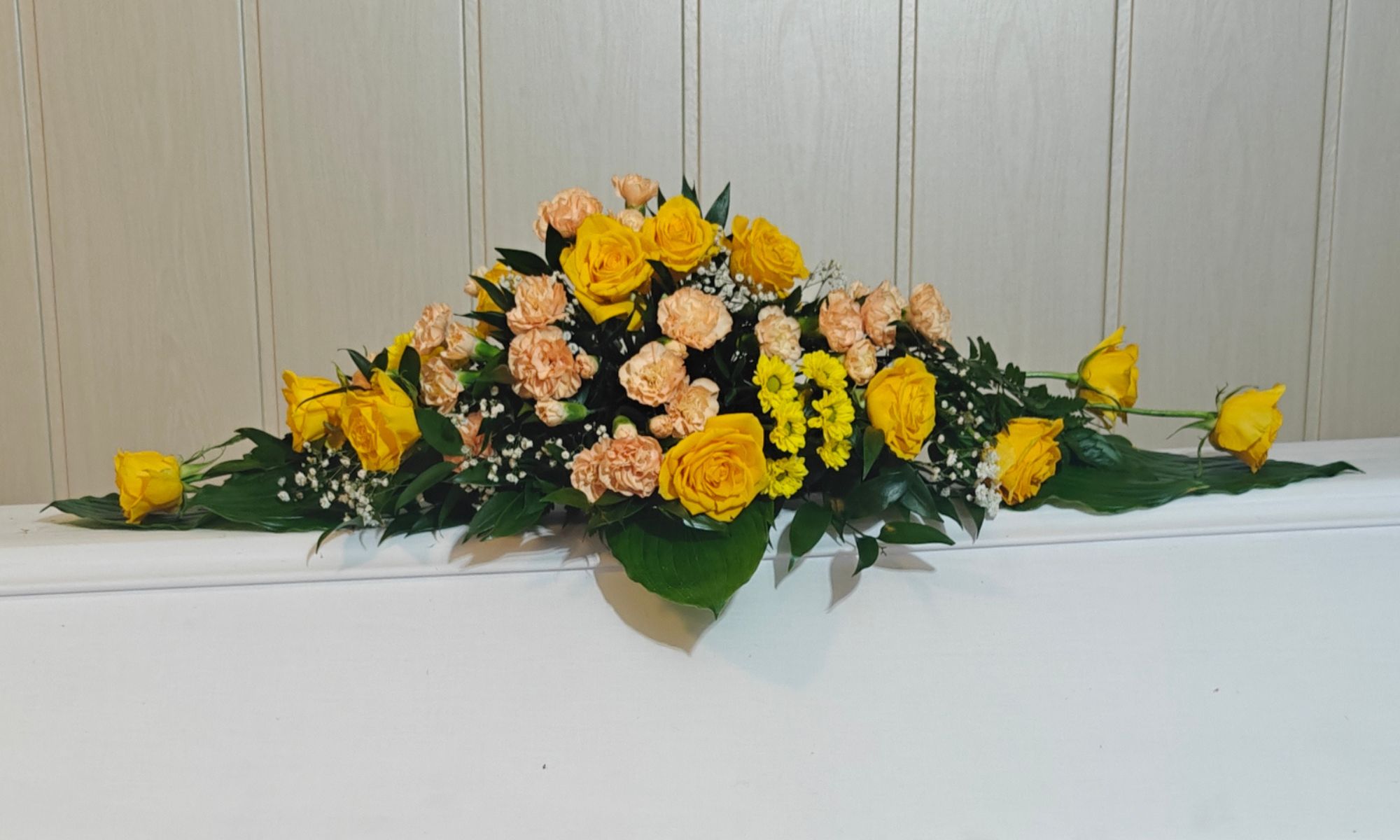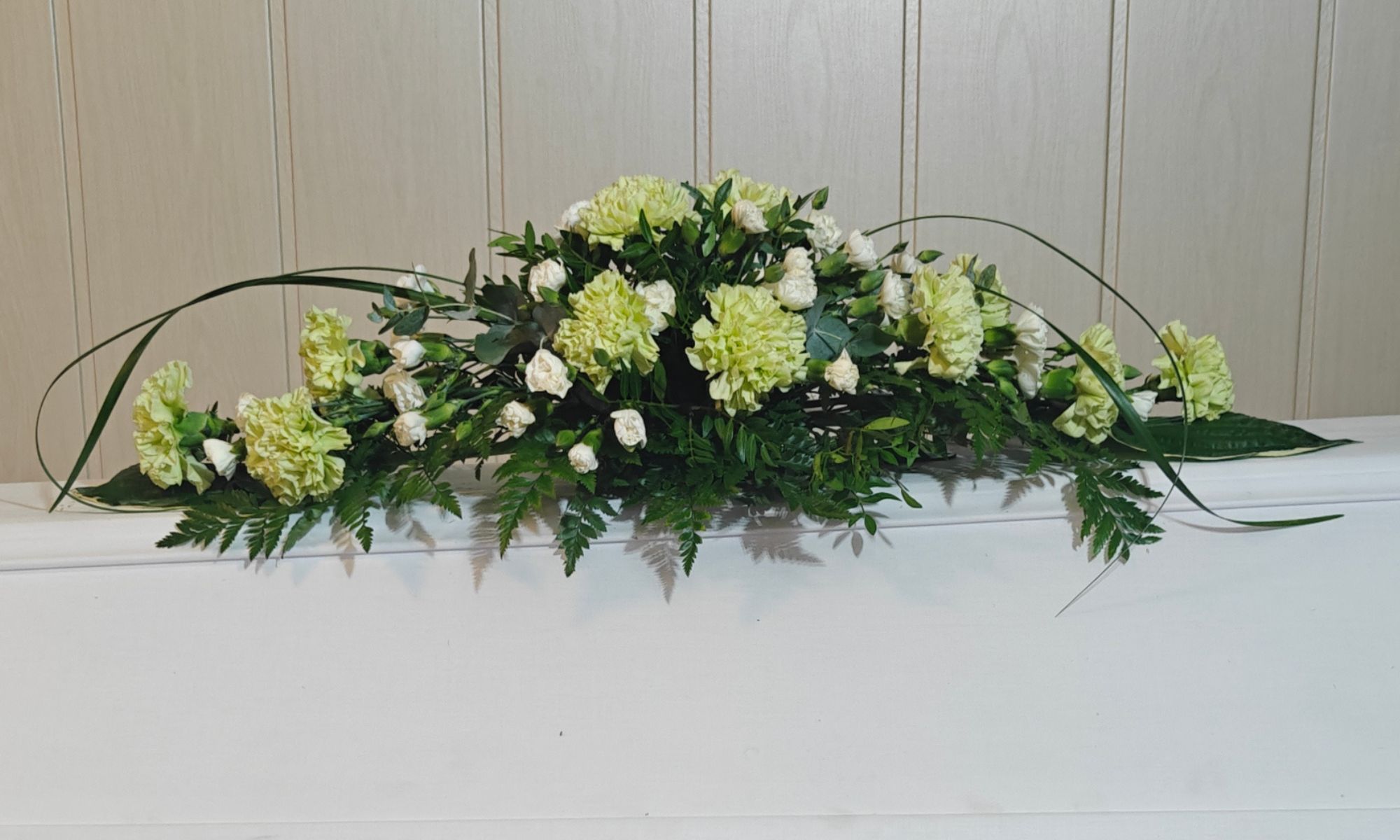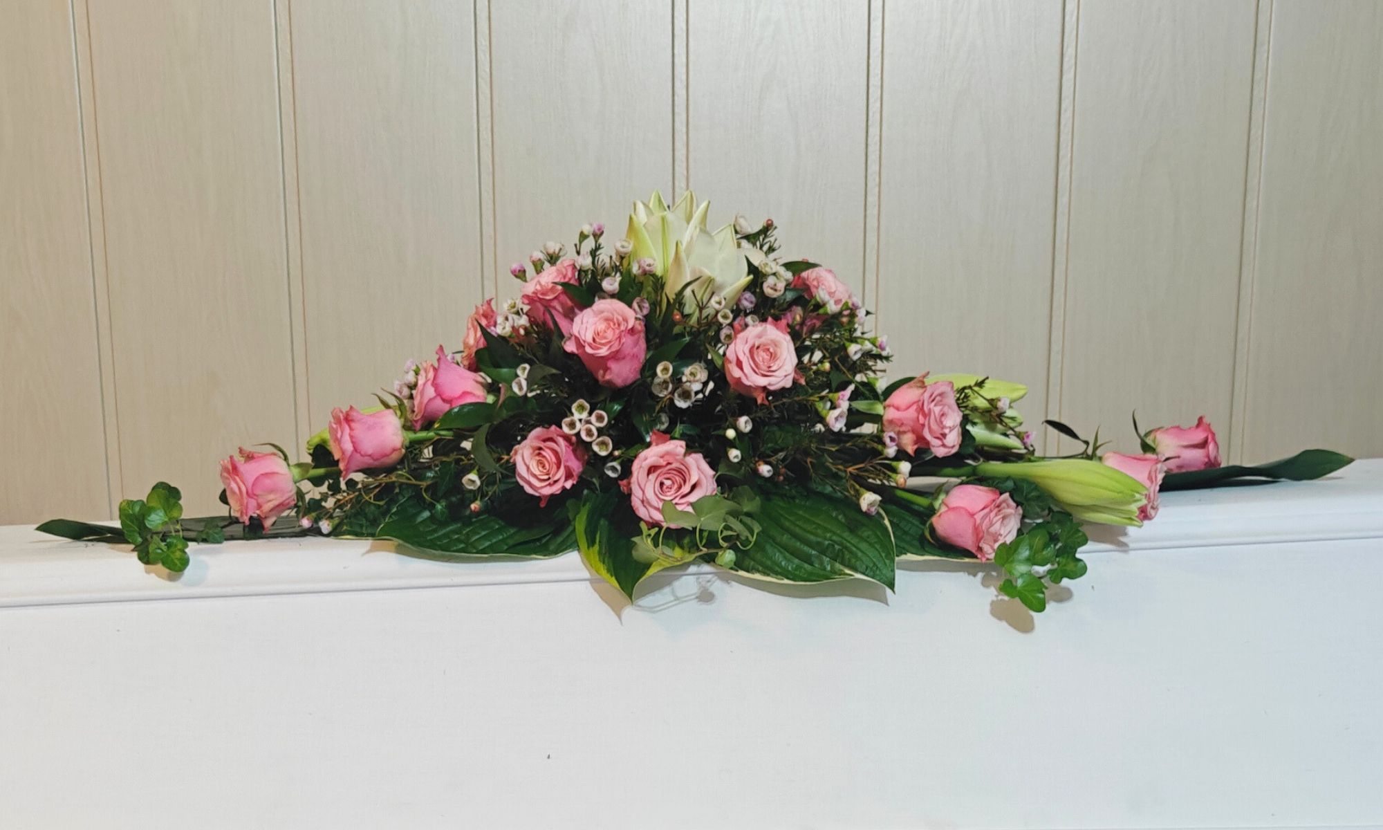 Perheyrityksemme Hautaustoimisto Tammen arkkulaitteet ja surukukat valmistaa floristi Anne, yrittäjäveljesten äiti.